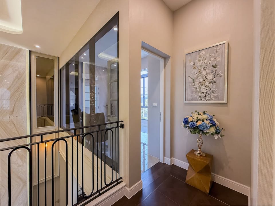 This brand-new, never-occupied 2-story detached villa in the prestigious Narasiri Krungthep Kreetha community offers 495 square meters of refined living space.
