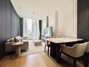 Its design emphasizes elegance and exclusivity, with a focus on greenery and open spaces, making it a standout in Bangkok’s luxury condo market.