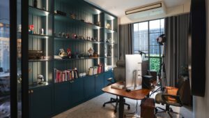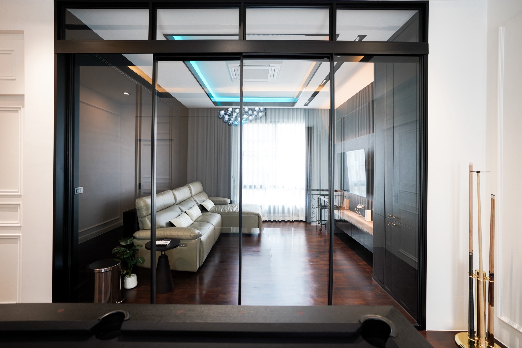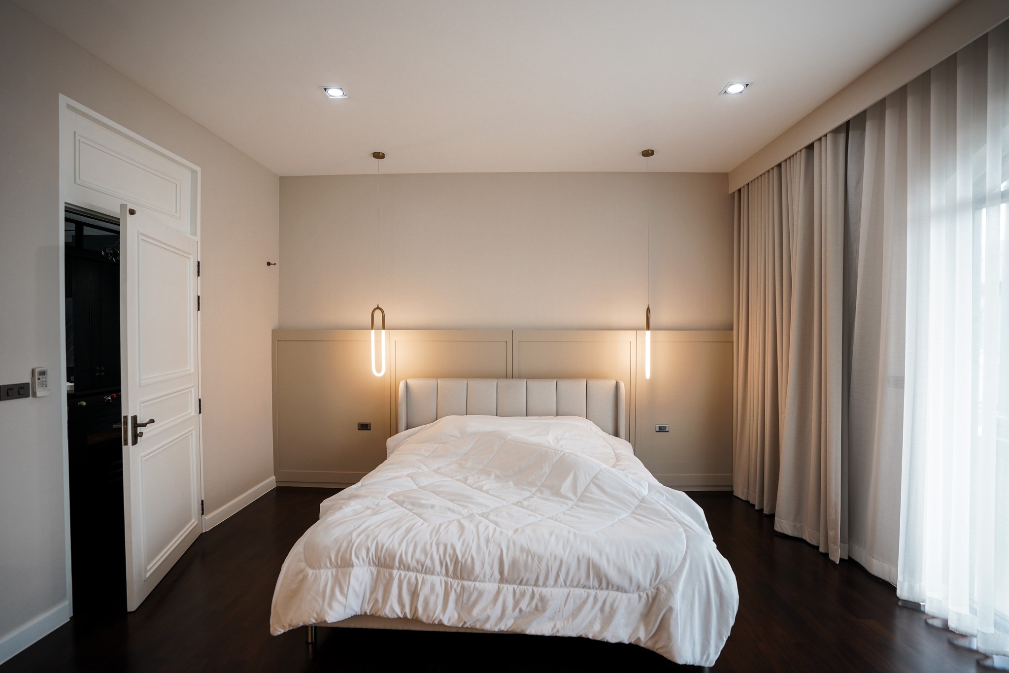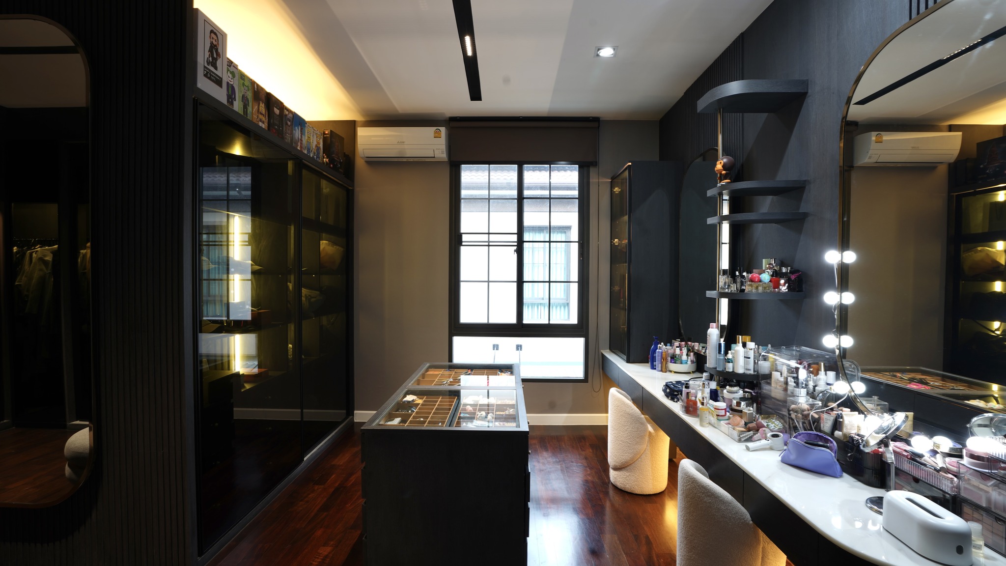 Originally designed with 5 bedrooms and 6 bathrooms, the house has been thoughtfully reconfigured into 3 spacious bedrooms, 3 living rooms, 1 office, 1 home gym with a large glass board for writing or brainstorming, 1 review room, 1 Western kitchen, 1 Thai kitchen, and 1 maid’s room with its own bathroom.