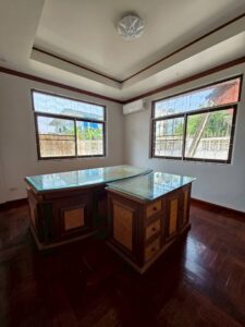 The property comes partially furnished with air-conditioning units in most rooms (replaceable by the tenant) and offers parking for 3-4 cars inside, with additional parking in front.