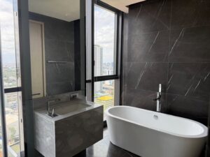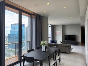 This stunning 125.20-square-metre two-bedroom flat, located on the 25th floor of The Monument Thong Lo, offers a super luxury living experience with a high level of privacy, enhanced by a private lift.